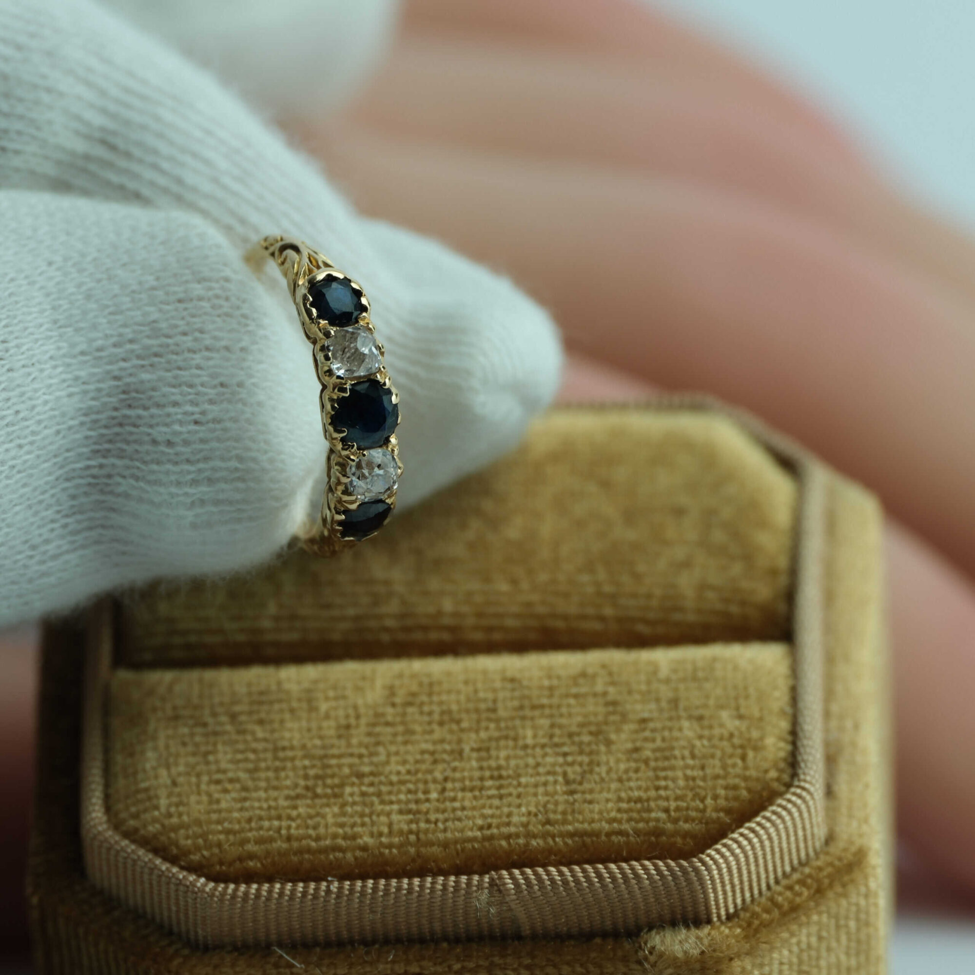 Here we present a beautiful early 20th-century sapphire and old-cut diamond ring, dating to around 1905 and exuding timeless elegance and refinement.