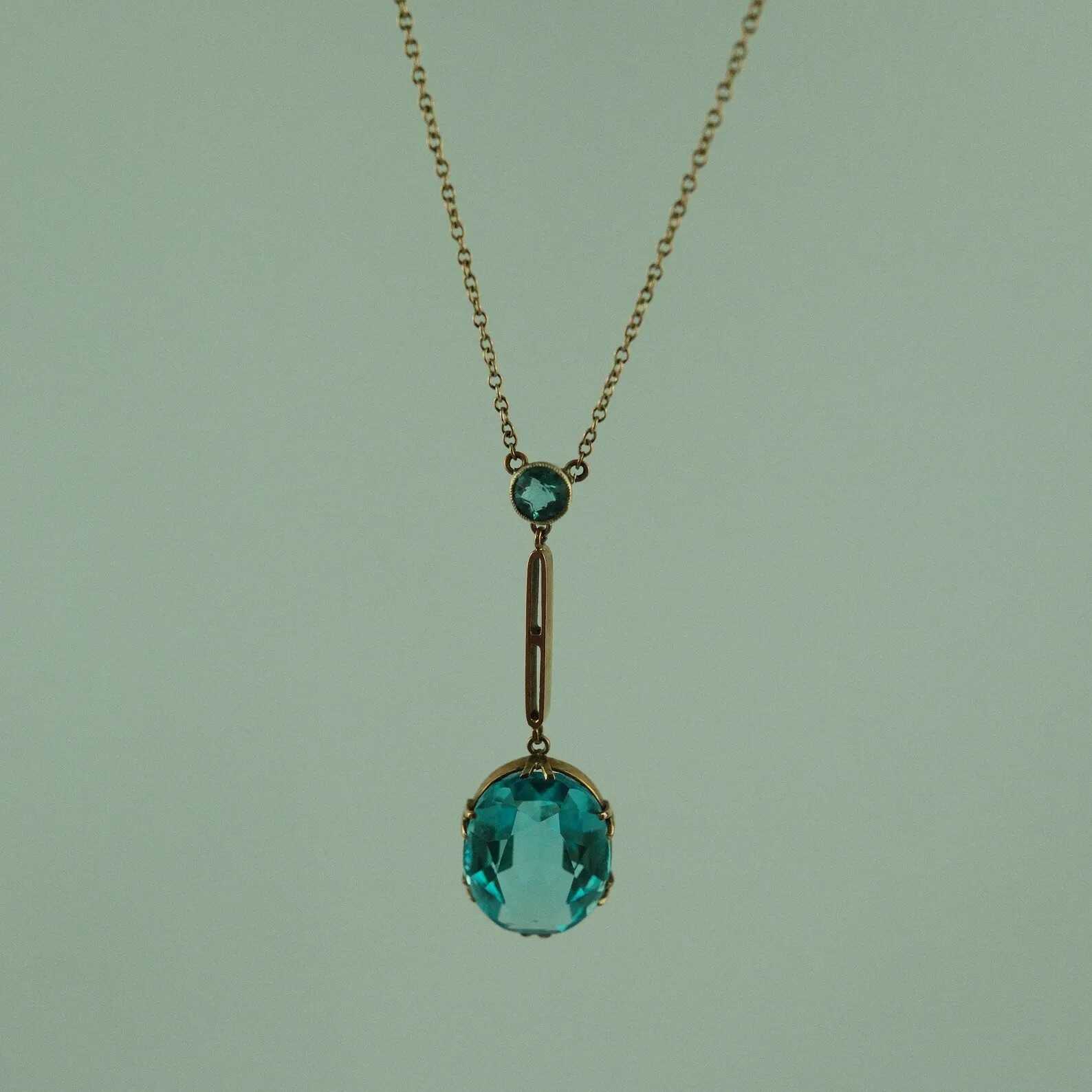 Presenting a stunning Edwardian 9ct gold necklace with blue paste, in excellent, ready-to-wear condition.